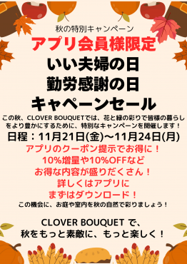 ② 勤労感謝の日キャンペーン【ご自宅用のお花 10%OFF】お部屋を彩る切り花や季節の花々が全品10%OFFに。